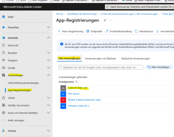 [[Datei:Schritt1.png|miniatur|600px|left|Schritt 1: Auf App-Registrierung gehen ]] | |||