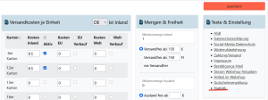 Im Kasten Mengen & Freiheit kannst du Einstellungen zum kostenfreien Versand vornehmen.