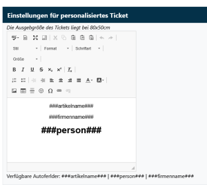 - Wenn mit Personalisierung gearbeitet wird, wird der Name bei ###ticket_personal### platziert.
