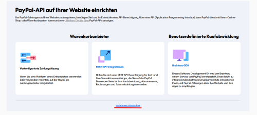 - NVP/SOAP-API Integration(klassisch) - seit einem Update bei Paypal kann diese Option auch apiaccess.classic.link heissen und ist etwas versteckt, als Text unter anderen Optionen sichtbar