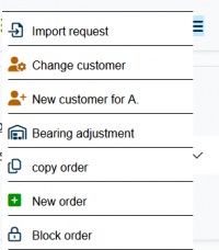 If you would like to create the same order for other customers, you can assign an old order to new customers by clicking on the icon copy order and duplicate it. Only the modalities of the order are copied. The customer file of the original order remains untouched. The new duplicated order can therefore only be assigned to existing customers by clicking on the orange icon with the two sheets of paper.