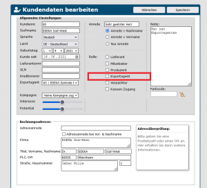 Wichtig: Das passiert nur dann, wenn die Kontodaten des Exportagenten auch vollständig eingetragen sind. Fallback sind die Kundendaten.