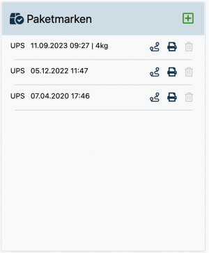 - Paketmarken: Übersicht erzeugter Paketmarken und Möglichkeit neuen zu Erstellen