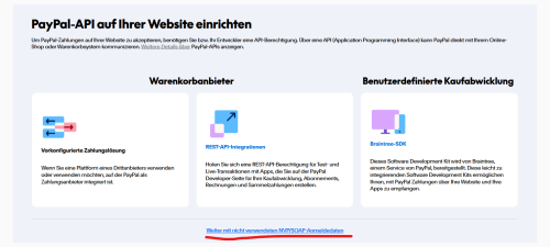 - NVP/SOAP-API Integration(klassisch) - seit einem Update bei Paypal kann diese Option auch apiaccess.classic.link heissen und ist etwas versteckt, als Text unter anderen Optionen sichtbar