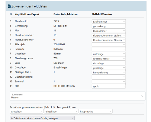 FAlls Sie Probleme haben, Senden Sie die für ihr Bundesland beschriebenen Exporte bitte per Mail an info@winestro.cloud. Bitte schreiben Sie im Betreff ihre Nutzernummer und das es sich um einen Schlagimport handelt.