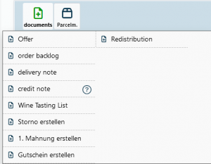 To create a new document, click on Documents at the bottom right of the order screen. Each document is automatically created from the specifications you have entered under System - Documents.