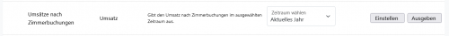 Gehe in der Kategorie Umsatz auf "Umsätze nach Zimmerbuchungen" und gib Dir die Statistik aus, bzw. triff die gewünschten Einstellungen. Du erhältst eine Umsatzstatistik, die auf Zimmeraufträge beschränkt ist.