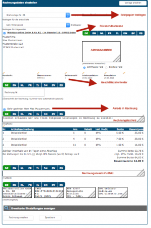 Das Premium-Paket ermöglicht darüber hinaus den Gebrauch unterschiedlicher Briefpapiere. Dadurch können unterschiedliche Belege hinterlegt werden.