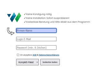 Auf unserer Homepage hast Du die Möglichkeit Dich zu einem kostenlosen Test anzumelden. Klicke hierfür entweder auf Jetzt testen oder auf Kostenlos testen und fülle folgendes Formular aus: