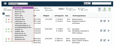 Aufträge nach dem Belegstatus filtern