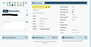 Es ist ratsam, für Mitarbeitende eigene 2FA einzurichten, da dies sicherer ist und diese bei Bedarf auch wieder einfach deaktiviert werden können. Das geht in der Mitarbeiter-Karteikarte / Kunden gleich oben (vgl. Bild)