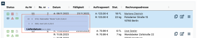 Hinweis: Neben jeder Spaltenüberschrift gibt es kleine graue Pfeile, über diese hast Du die Möglichkeit, die Aufträge nach verschiedenen Kriterien auf- oder absteigend zu sortieren, z.B. Datum, Rechnungsnummer oder Auftragsnummer.