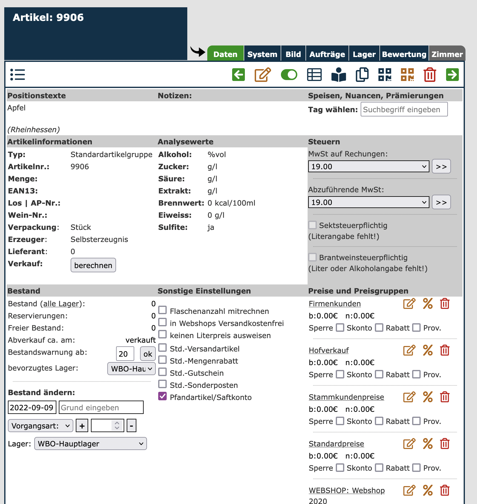 Saftkonto Apfel