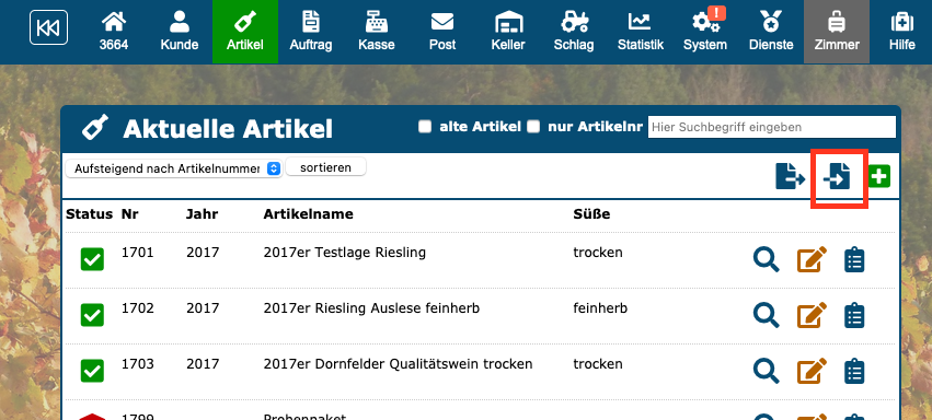 Artikelimport über dieses Symbol