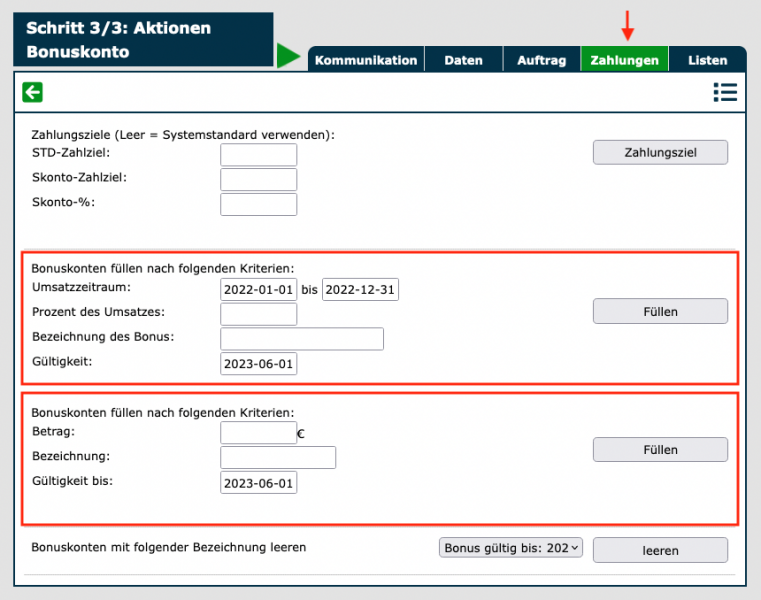 Bonuskonto Kundenselektion
