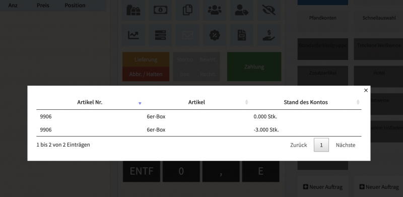 | aktuell | 09:58, 19. Jul. 2022 | 2.232 × 1.090 (175 KB) | Paulina (Diskussion | Beiträge) | Pfandkontoübersicht in der Kasse |