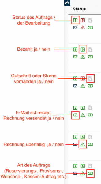 Status Symbole Auftragsliste