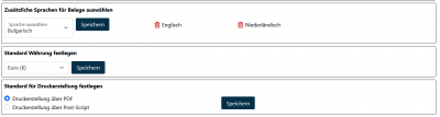 Ab dem Premiumpaket kannst Du die Sprache Deiner Belege anpassen. Bei der Einstellung "Zusätzliche Sprachen für Belege auswählen" hast Du zunächst die Möglichkeit die Sprachen, die Du für Deine Belege benötigst, zu aktivieren. Für jede Sprache, die Du hier auswählst, erhältst Du bei den Dokumenten und Artikeln zusätzliche Sprachen für Deine Textfelder zur Verfügung gestellt. Mehr dazu im Artikel über den Auslandsauftrag.