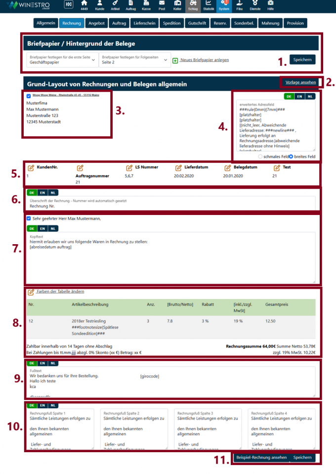 Solche individuellen Anpassungen werden vom Winestro.Cloud-Team umgesetzt, damit die technische Integrität und korrekte Darstellung auf allen Dokumenten gewährleistet bleibt.