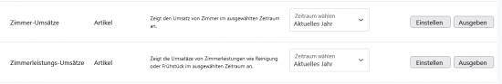 In the Turnover category, go to “Turnover by room bookings” and select the statistics or make the desired settings. You will receive a turnover statistic that is limited to room bookings.