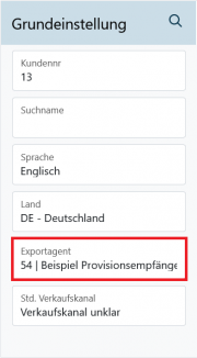 Wenn Du Deine Agenten angelegt hast, kannst Du diesem weitere Kundinnen und Kunden zuweisen. Gehe hierfür in die Kundenkarteikarte des Kunden dem der Exportagent zugewiesen werden soll. Bei den Grundeinstellungen wählst Du nun bei Exportagent den im Voraus erstellten und als Exportagenten hinterlegten Kunden aus. In dem Kästchen sollten alle Deine Exportagenten aufgeführt werden.