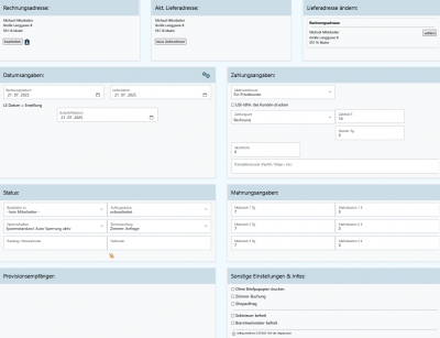 Hier kannst Du noch einmal die Lieferadresse und Rechnungsadresse unter bearbeiten   für diesen Auftrag ändern. Bitte beachte, dass eine Adressänderung beim Kunden nicht in bestehende Aufträge übernommen wird. Du kannst allerdings über einen Klick auf die Kundenakte Beispiel Kunde  alle Auftragsdaten an den aktuellen Stand des Systems anpassen.