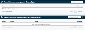 Sobald eine Mailadresse in der Kundenakte korrigiert wurde, erscheint hier in der Rücklauf-Liste ein grüner Haken. Die Berechtigung zum Newsletter-Versand (Pfeil zeigt nach unten) kann bestehen bleiben. Sind keine Korrekturen an einer Mail möglich oder sinnvoll, klicke auf diesen Pfeil, dieser zeigt anschließend nach oben und die Berechtigung zum Newsletter-Versand wurde automatisch in der Kundenakte entfernt. Die Bearbeitung des Rücklaufs ist erst dann abgeschlossen, wenn alle Einträge auf der Liste entweder einen grünen Haken (Mail korrigiert) oder einen Pfeil nach oben (Berechtigung entfernt) haben. Versende erst anschließend den nächsten Newsletter. Hier geht es zum eigenen Artikel Fehlerhafte Rückläufe